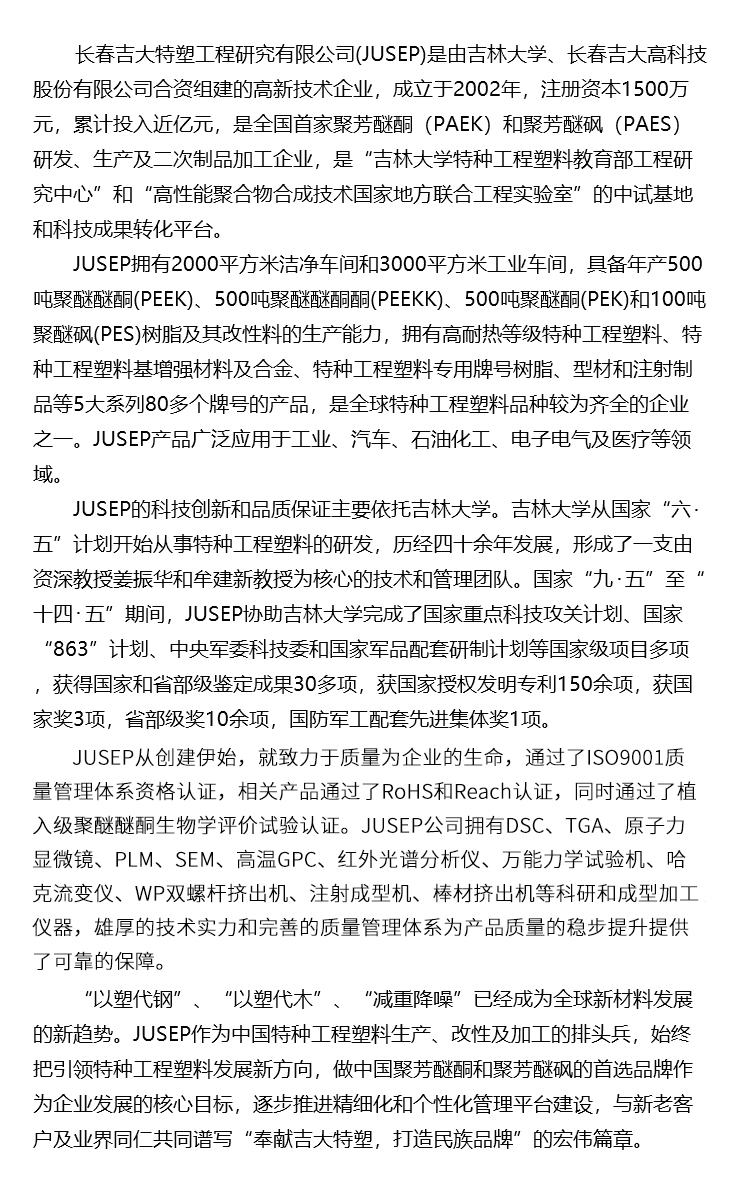 熱門產(chǎn)品:長(zhǎng)春聚醚砜 長(zhǎng)春PEEK型材棒 長(zhǎng)春聚醚醚酮 PEEK單/復(fù)絲 長(zhǎng)春吉大特塑工程研究有限公司 吉ICP備16004630號(hào)-2 a>